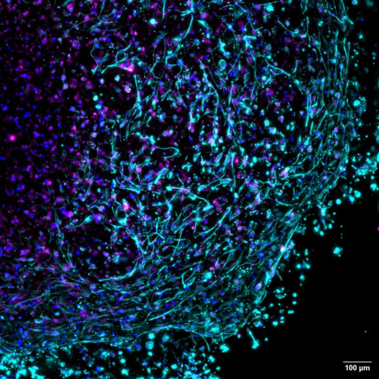 Carcinotech’s Imaging Scientist, Michaela Macdonald, was selected as the June winner in the online ‘Research Is Beautiful’ campaign run by Cancer Research UK (CRUK). CRUK launched this campaign to celebrate the beauty and advancements in imaging involved in cancer research. Our winning image captures one of our 3D-bioprinted living tumours, derived from donor glioblastoma tissue, and highlights the intricacy of the tumour microenvironment (TME). The TME is crucial in cancer research as it accurately models tumour complexity, drug resistance mechanisms, and immune interactions, leading to more predictive preclinical models and effective, personalised cancer therapies. We’re proud to have been recognised by CRUK and to showcase how the physiological similarity of our bioengineered tumours makes them invaluable tools for cancer drug discovery. Keep up the great work, Michaela!